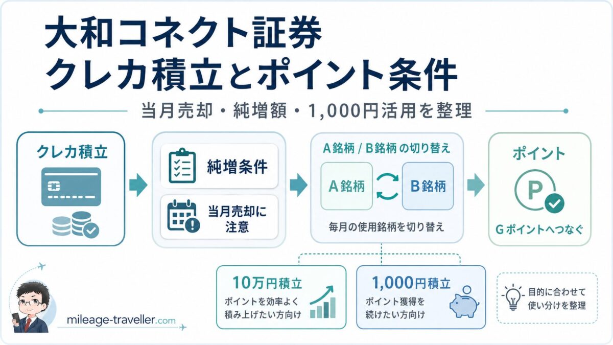 ただし、年会費条件やカードごとの扱いは変わる可能性があります。実際に使う前には、カード公式と大和コネクト証券公式の両方を確認してください。
