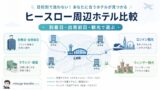 特に、到着日や出発前日は、入国、荷物、翌日の便、ホテル移動が重なります。無理に中心部ホテルへ移動するより、空港近くで荷物を置き、翌日の空港移動を短くする選び方もあります。