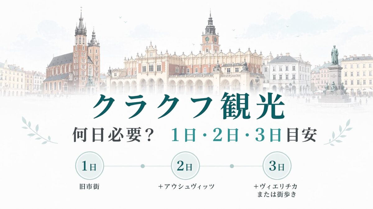 結論だけ短く言うと、クラクフ観光は見どころの数で日数を決めるより、旧市街だけで足りるか、アウシュヴィッツまで入れるかで決めたほうが失敗しにくい、ということです。